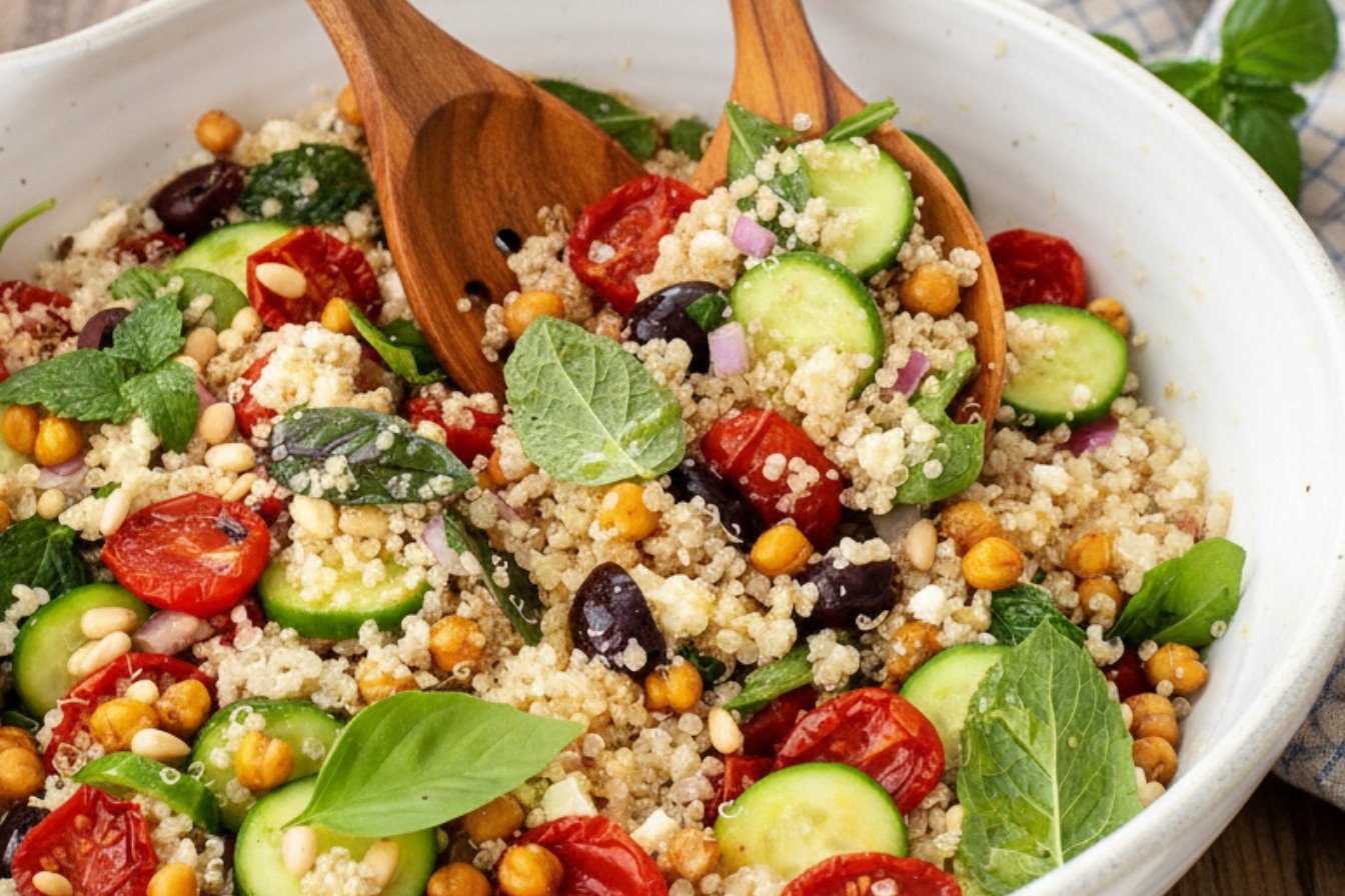 This healthy quinoa salad is a full meal. For a lighter lunch, serve it in a bowl with extra lemon. For dinner, add grilled chicken or fish. My favorite pairing is warm pita bread for dipping. It’s one of the best gluten-free salad recipes for a crowd. Which would you choose tonight?