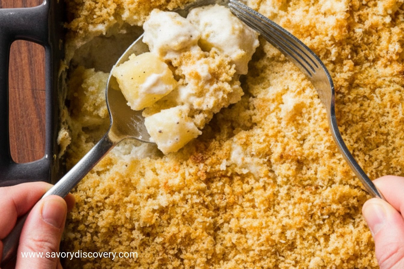 Simmering the potatoes right in the cream is key too. It lets the flavor go deep into every chunk. This matters because flavor should be in the food, not just on top. The topping is for crunch. The inside is for comfort.
