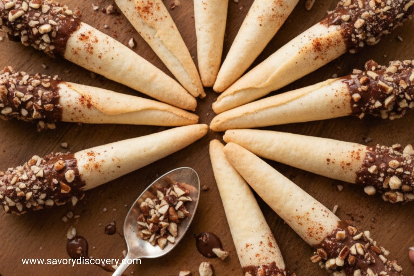 Add a pinch of cinnamon or nutmeg to the flour. It gives a real holiday warmth. Use orange zest in the batter instead of vanilla. It’s bright and cheerful. Roll the warm cookies around a chopstick. This makes a bigger, hollow tube. Which one would you try first? Comment below!
