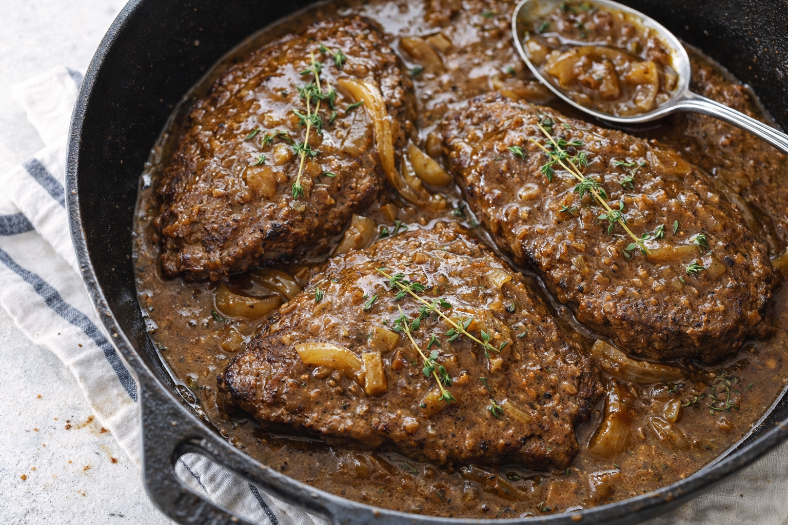 This recipe nods to Southern smothered steak, born in thrifty home kitchens. It stretches cheap cuts into hearty meals. *Did you know Worcestershire sauce was invented by accident in England?* Now it’s a global staple. Vote: steak with gravy or without?