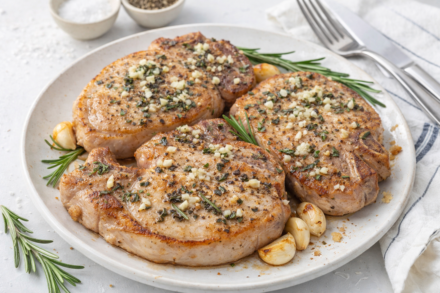 Lemon Zest Brightness: Add lemon zest to the rosemary garlic butter. It makes the sauce sing! Perfect for a sunny weeknight pork chop recipe.