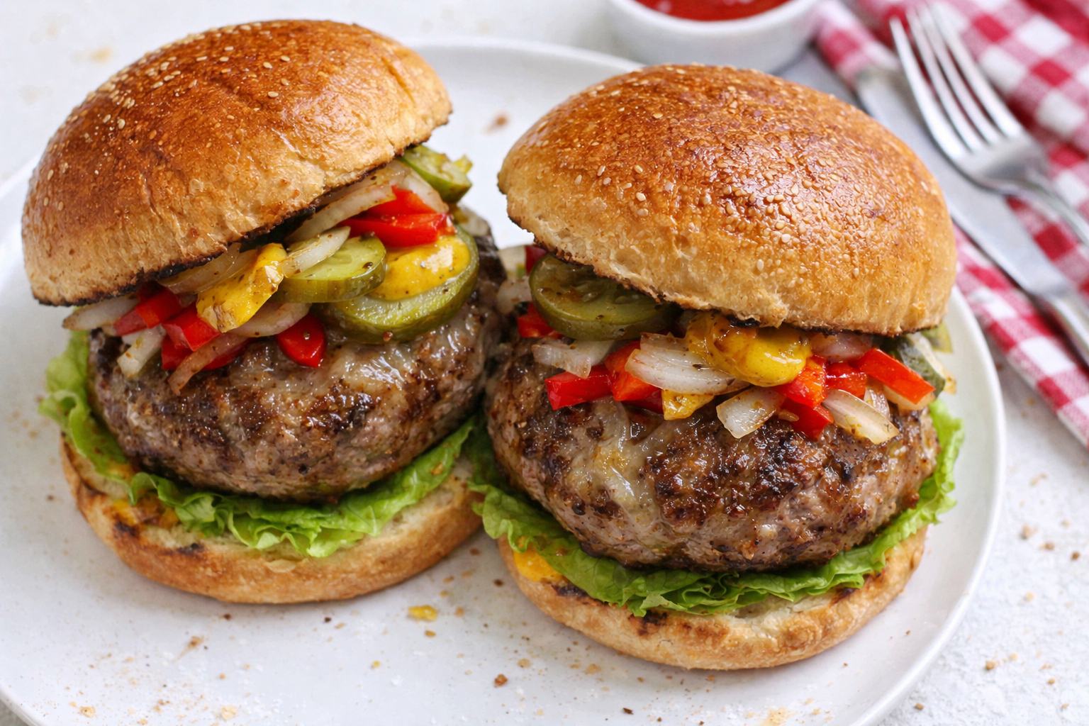 Nothing beats a homemade burger piled high with toppings. Tag @SavoryDiscovery on Pinterest to show off your juicy masterpieces. Your twists inspire me—try adding bacon or jalapeños next time. Happy cooking! —Elowen Thorn.