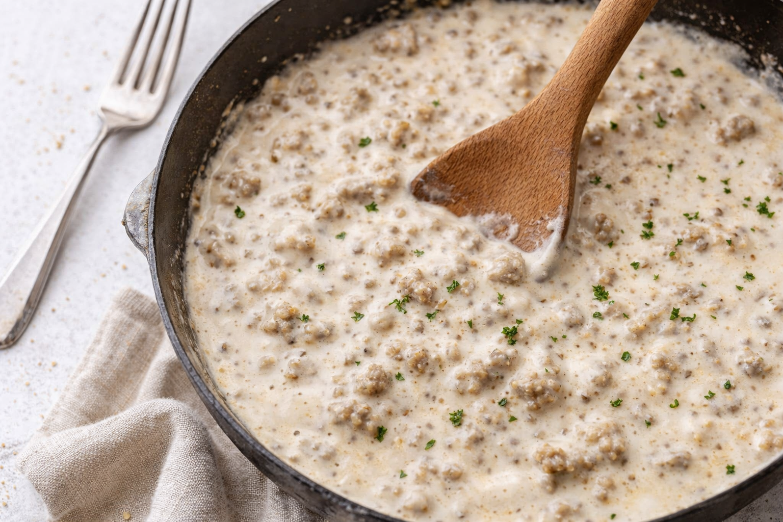 A rich and creamy sausage gravy perfect for breakfast biscuits or mashed potatoes.