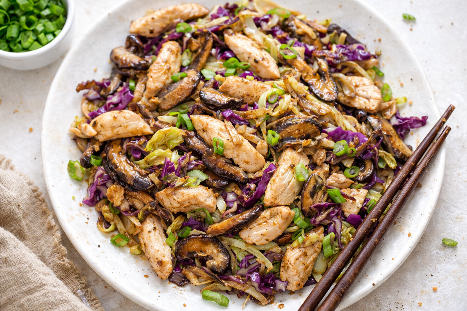 Vegetarian Swap chicken for tofu or tempeh. Add extra mushrooms for meaty texture. Spicy Kick Toss in sliced jalapeños or chili paste. Hoisin balances the heat nicely. Winter Warmth Use shredded Brussels sprouts instead of cabbage. Hearty and seasonal. Which twist would you try first? Vote in the comments!Serving Ideas & Sips