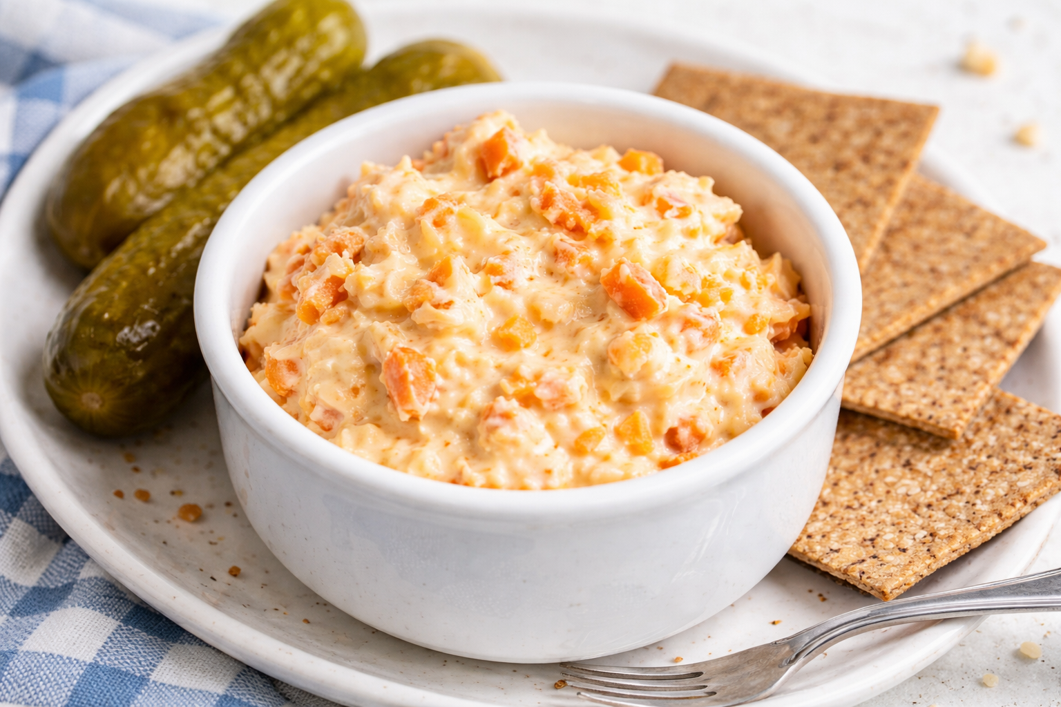 A classic Southern spread made with sharp cheddar, pimentos, and mayonnaise, perfect for sandwiches, dips, or crackers.