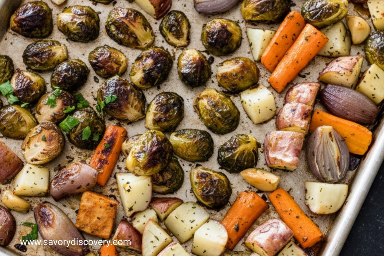 Step 2: Now, pour the vegetables onto a baking sheet. Spread them in one layer. Be sure to place the Brussels sprouts cut-side down. This helps them get a lovely brown crust. Roast them for about half an hour. Remember to turn the pan halfway. What’s your favorite root vegetable? Share below! The kitchen will smell like a cozy dream.