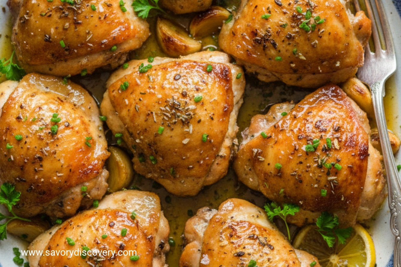 Potato Bed: Add thin potato slices under the chicken. They will soak up all the amazing lemon and garlic juices.