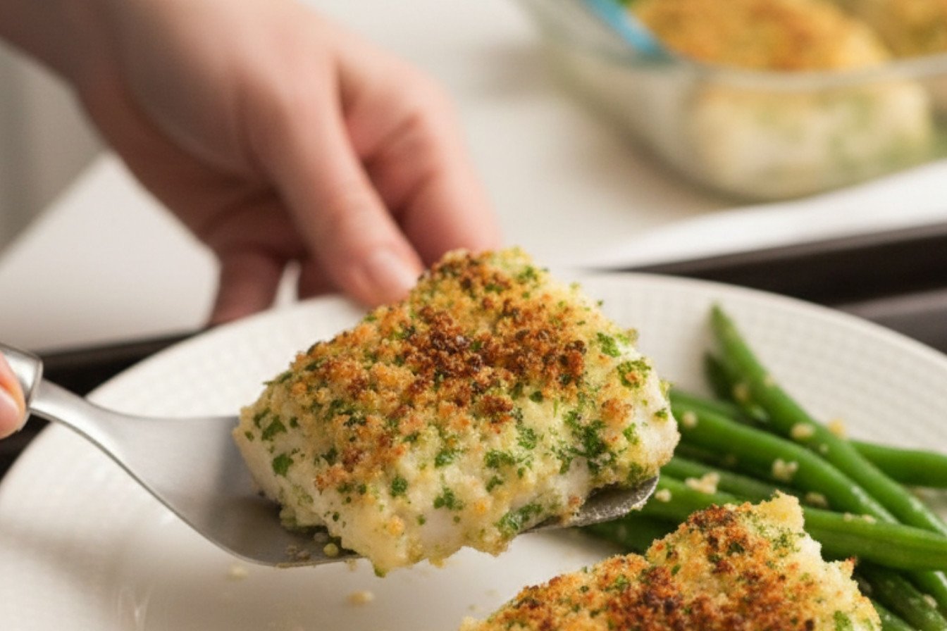 You press this mix onto buttered fish fillets. Then into the oven they go. Why this matters: that crispy crust makes eating fish a joy. It adds fun texture. This turns simple cod fillet recipes into something special.