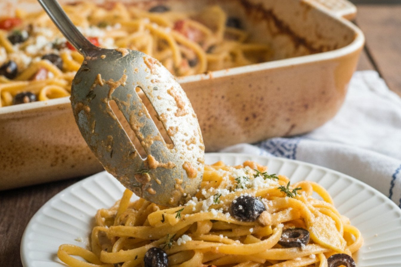 What is a good recipe for Mediterranean pasta with olives and feta?