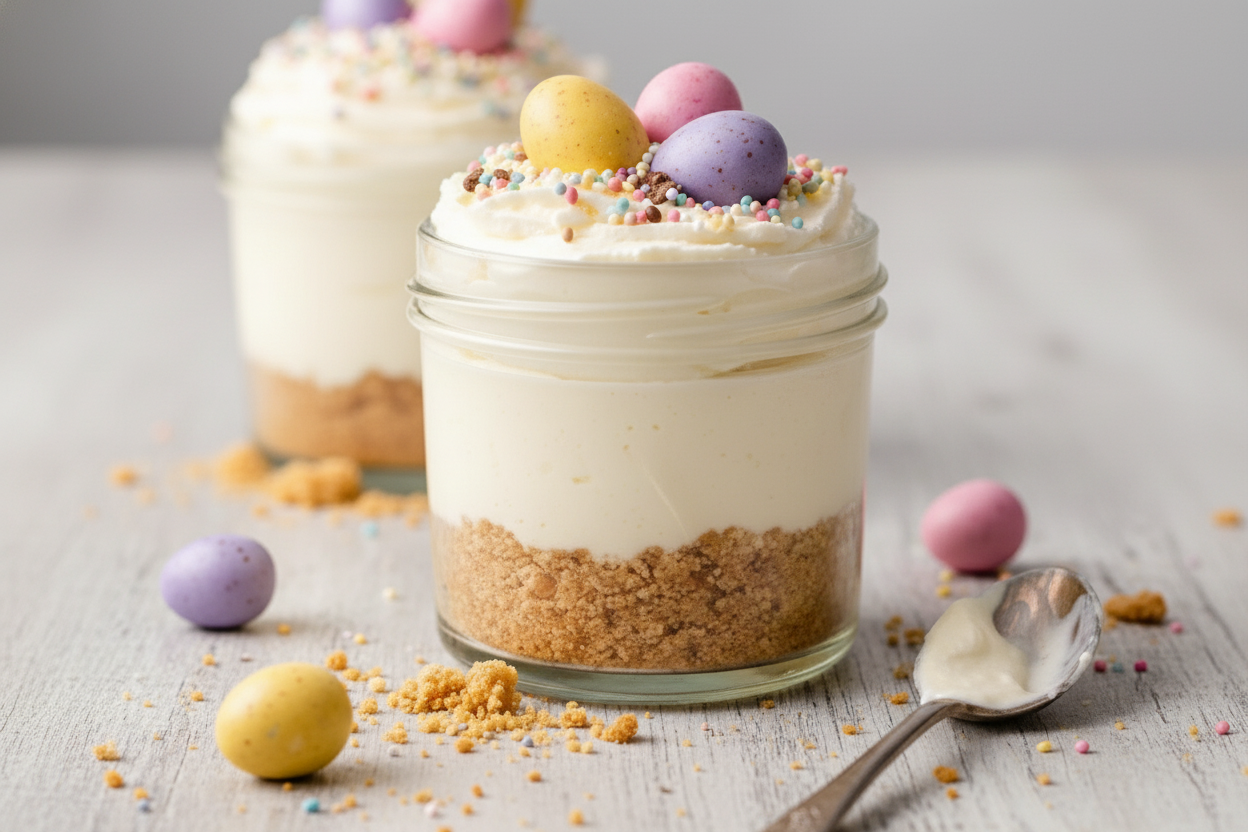 Serve these jars straight from the fridge. Hand out small spoons with them. I like to add a few fresh berries on the side for color. A glass of cold milk or a cup of tea pairs perfectly. These easy Easter mini cheesecakes are a joy to share. You could also line them up on a tray for a sweet centerpiece. Which would you choose tonight?