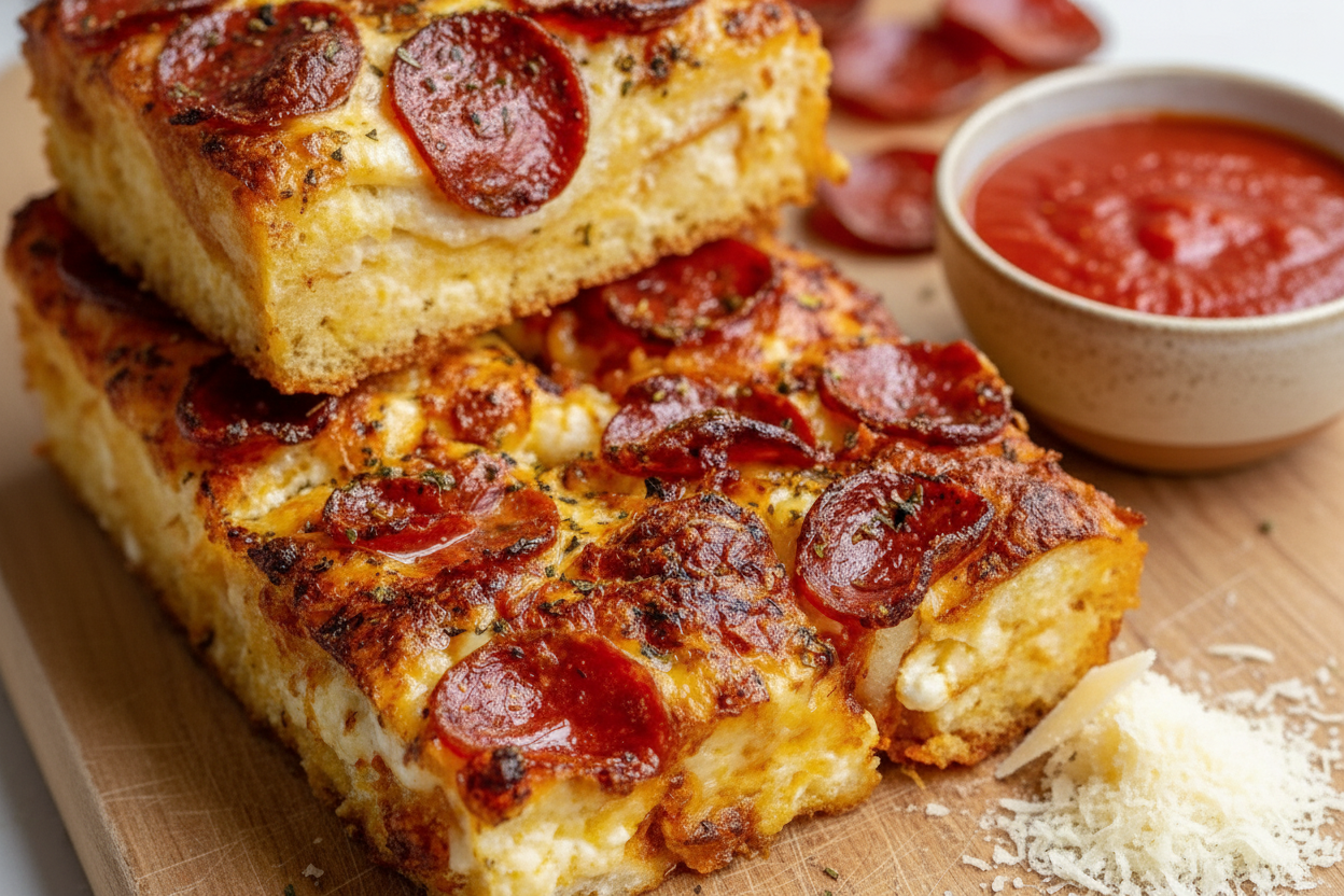 Step 4: Let it cool for five minutes before cutting into squares. Serve it warm with a simple side salad or some crispy garlic bread. I love adding fresh basil on top — it makes the kitchen smell like a pizzeria.