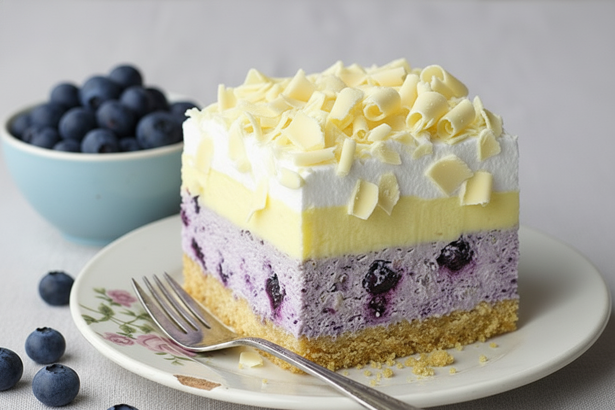 Serve each slice on a pretty plate. A few fresh blueberries and a lemon twist make it fancy. For a party, cut smaller squares. This dessert is rich, so a cup of herbal tea or cold milk is perfect alongside. Which would you choose tonight?