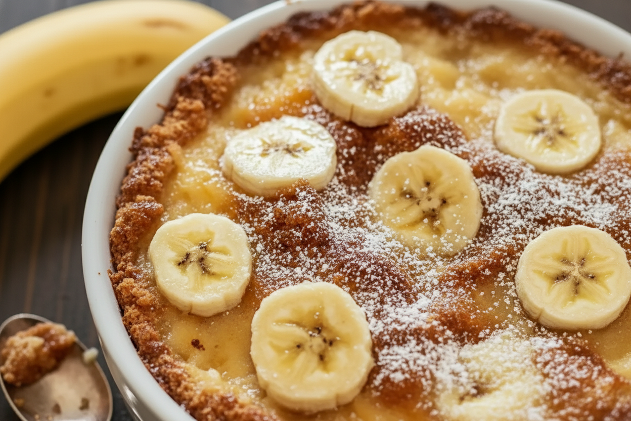 Let me share a little secret. The magic is in the layering. You pour the batter in the dish first. Then you spoon the gooey banana mixture right on top. Here is the key. Do not stir. Not even a little bit. I know it feels funny to leave it alone.
