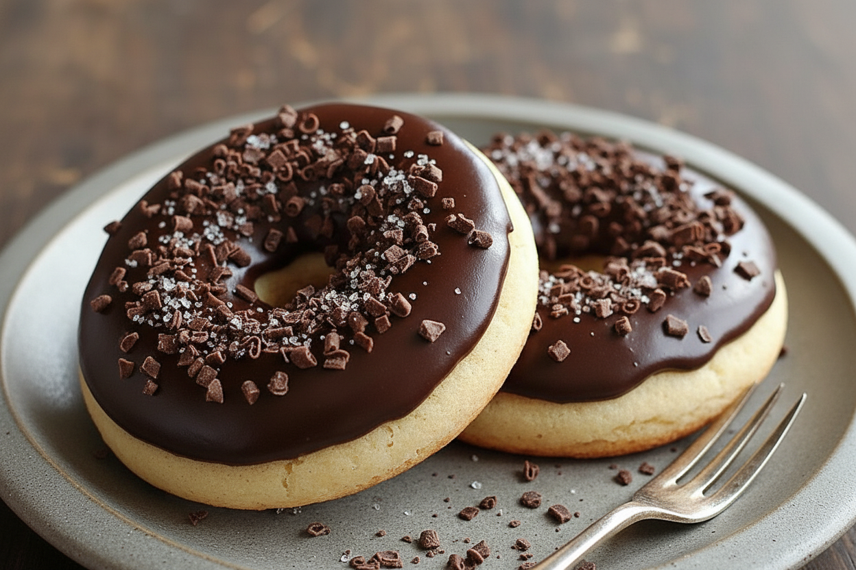 Add a sprinkle of sea salt on the wet chocolate glaze.