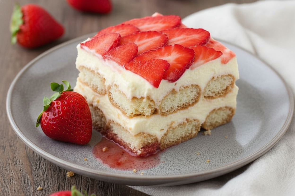 Every slice will show the beautiful layers. The red jelly, the pink-touched cookies, the white cream. It’s a story in a dish. If you love matcha, a matcha tiramisu makes a gorgeous green layer. Which flavor do you think you’d try first: strawberry, lemon, or matcha?