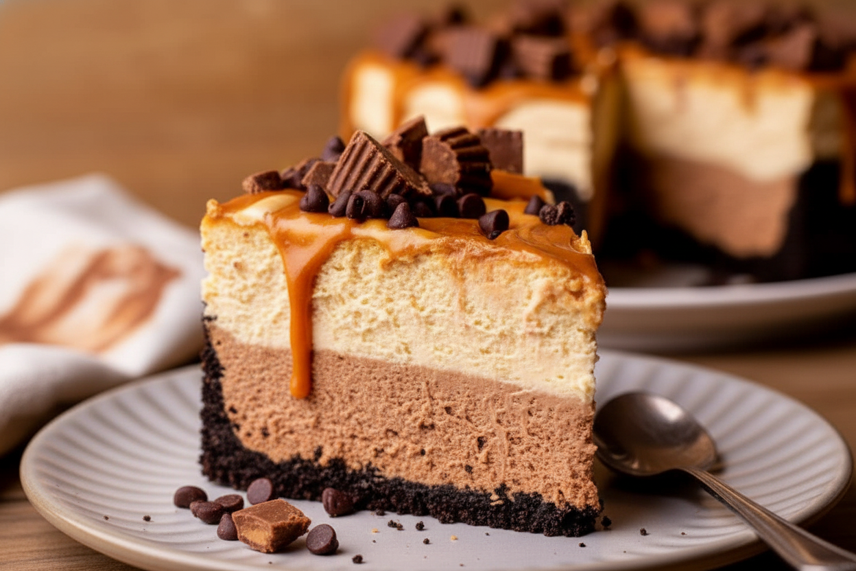 Step 5: Time to assemble! Spread the chocolate filling into your crust. Then, carefully add the peanut butter layer on top. Drizzle melted peanut butter and swirl it with a knife. What’s your favorite part to lick from the spoon? Share below!