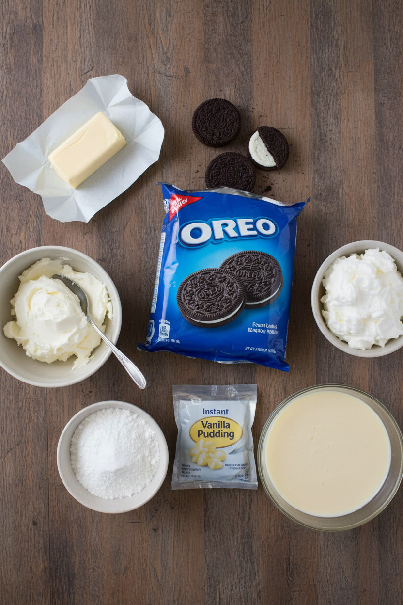 You need Oreos, butter, cream cheese, and powdered sugar. Also get instant pudding mix, cold milk, and whipped topping. Do not forget mint extract and green food coloring. These simple items create magic together. They make a dessert that looks and tastes special. Everyone will ask you for the recipe.