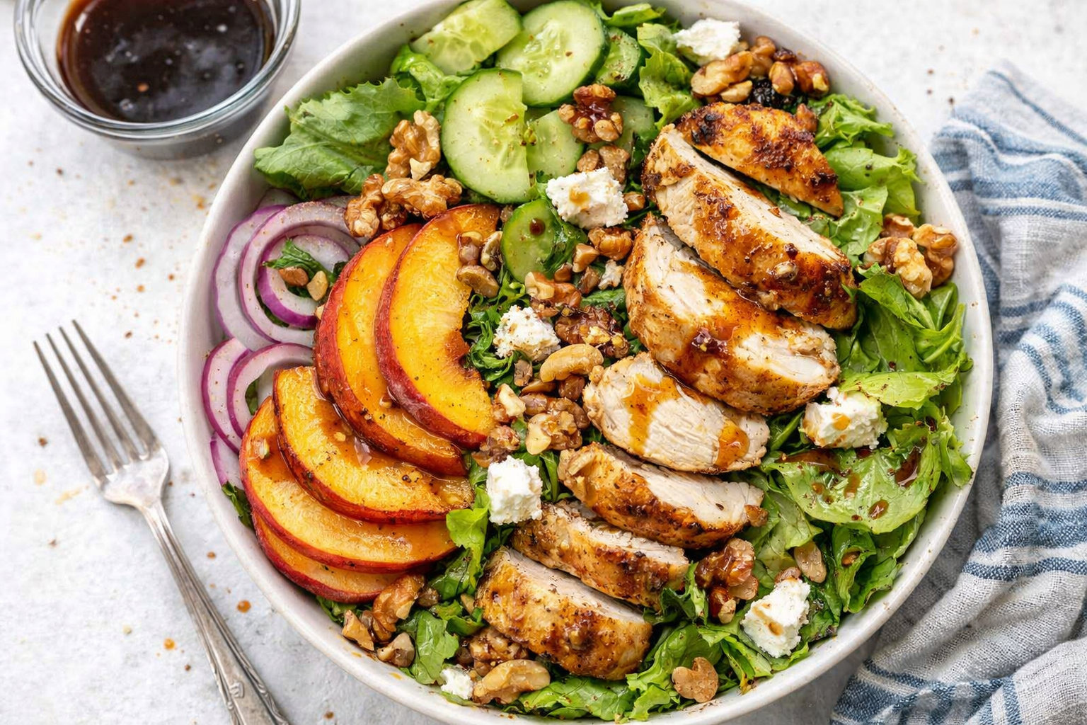 – The peach glaze adds sticky-sweet tang. – Crunchy walnuts balance the soft chicken and greens. Which flavor combo surprises you most? Is it the spicy pepper flakes with sweet peaches? Or the salty feta against the balsamic drizzle? Let me know!A Dish with Roots
