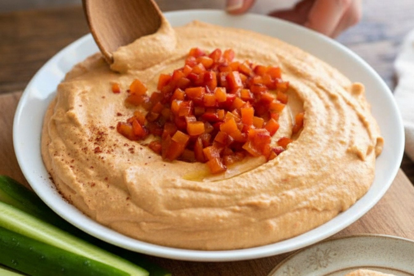 A vibrant and creamy homemade hummus with the sweet, smoky flavor of roasted red peppers. Perfect as a dip or spread.