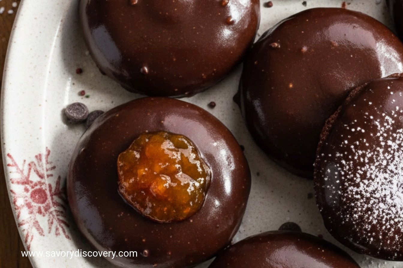 Rich chocolate cookies with an apricot jam center and a glossy chocolate glaze, inspired by the classic Sacher Torte.