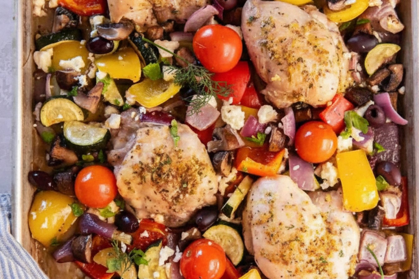 Mediterranean Chicken and Roasted Vegetable Tray Bake