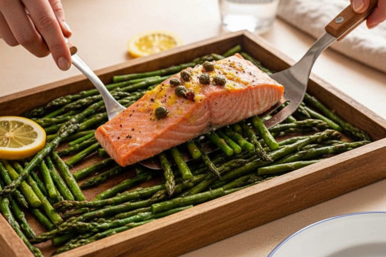 Use 400°F for this easy salmon recipe. This high heat is perfect. It cooks the salmon quickly and roasts the asparagus. You get a crispy outside and tender inside. This temperature makes your one pan salmon and asparagus dinner ready fast. It is the best way to cook salmon in the oven for a quick healthy salmon dinner.