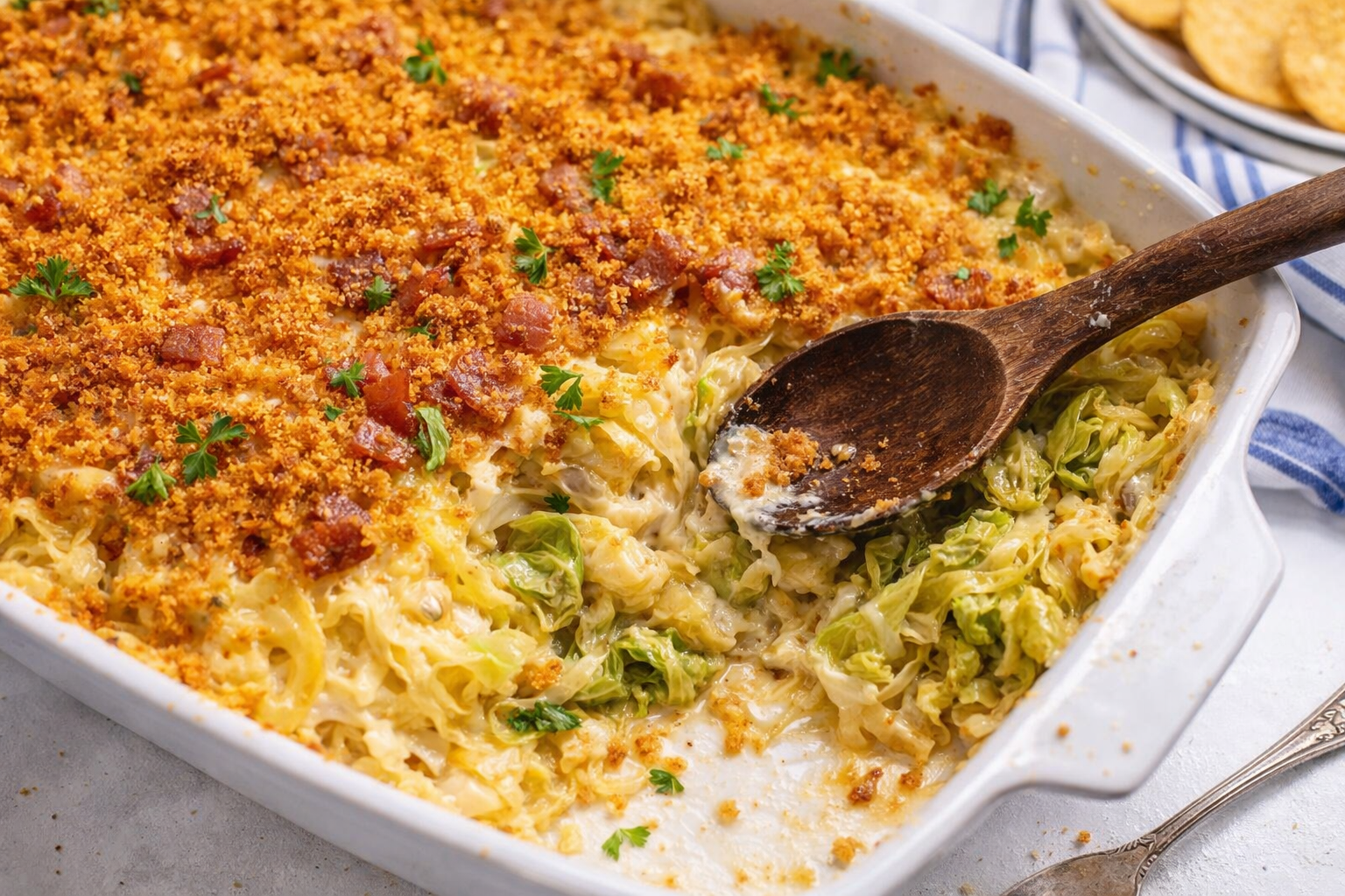 This dish is a masterclass in texture. The soft cabbage meets a crispy, buttery topping. The flavors are a perfect balance too. Savory bacon and sharp cheese cut the sweet onion. Which flavor combo surprises you most: bacon and cabbage or cheese and crackers? The creamy sauce brings everything together beautifully. It is a simple but genius mix. Every bite offers something new and exciting.