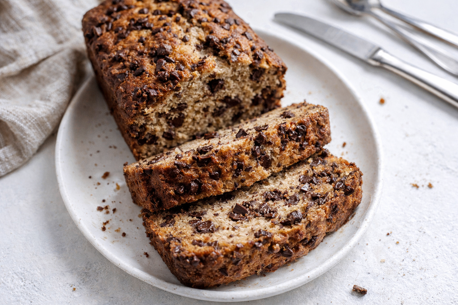 Enjoy this moist and flavorful chocolate chip banana bread, packed with ripe bananas and melty chocolate chips.
