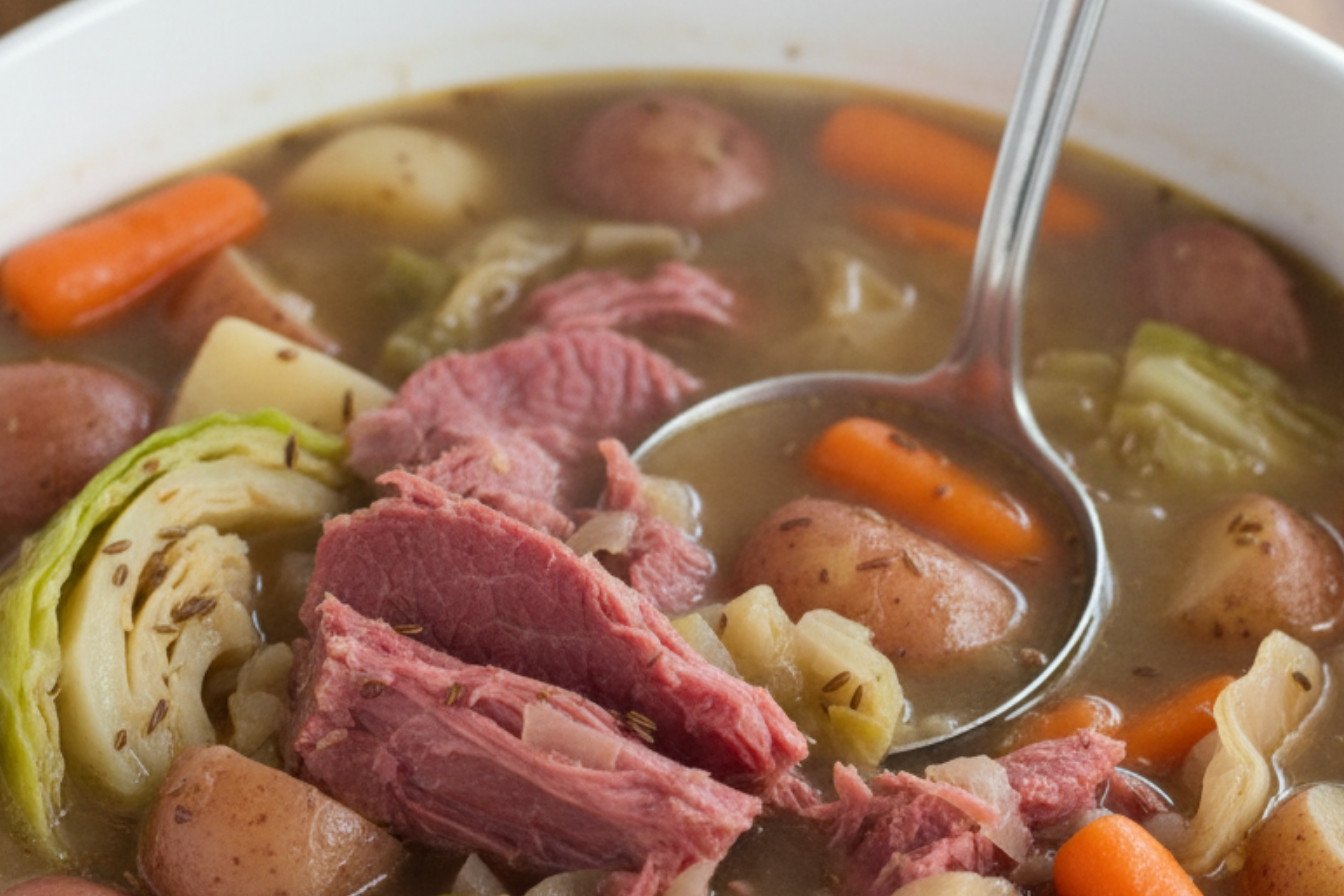 A classic and comforting slow cooker meal featuring tender corned beef brisket with hearty potatoes, carrots, and cabbage.