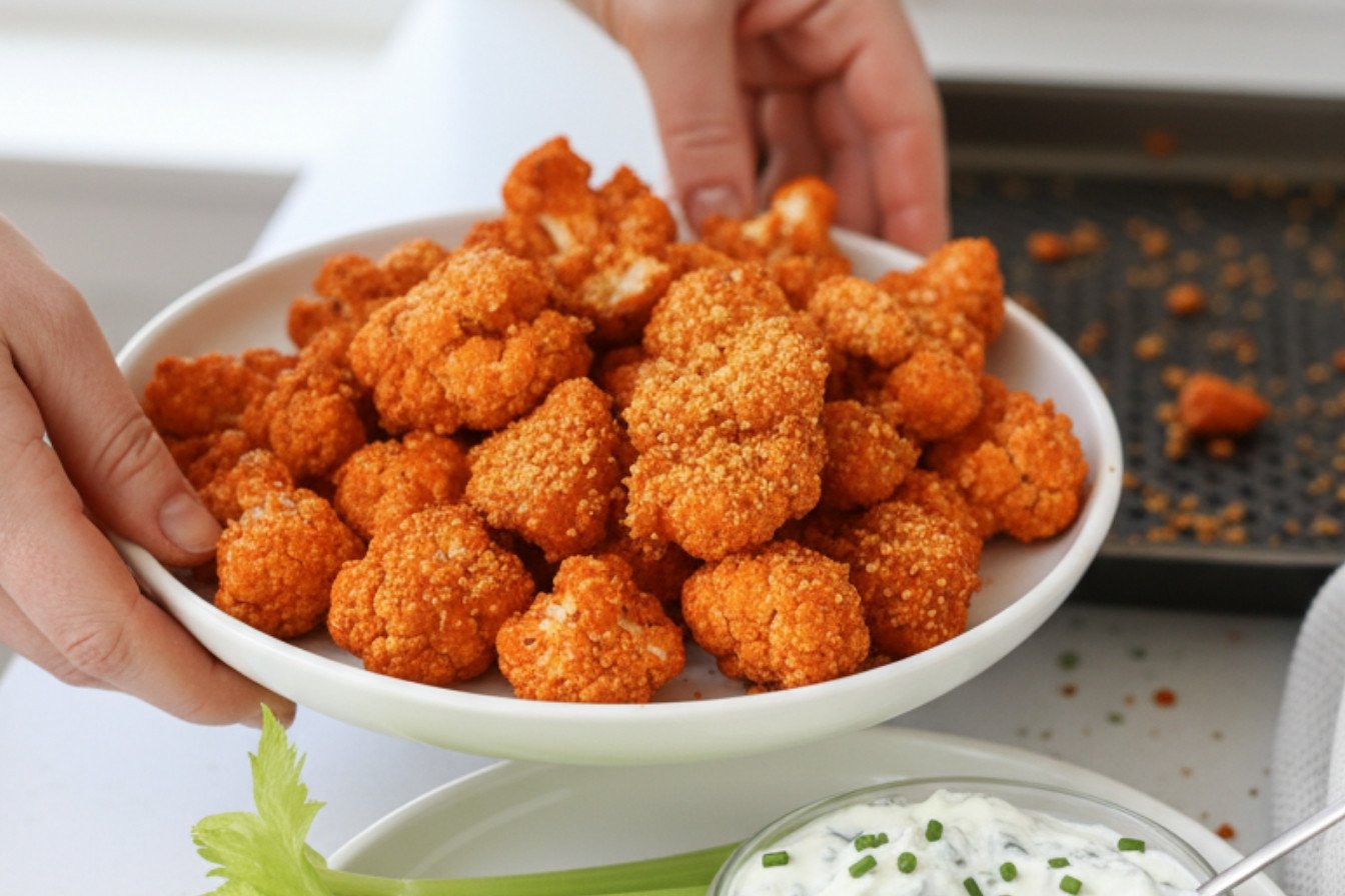 Spicy Buffalo Cauliflower Air Fryer Crisps