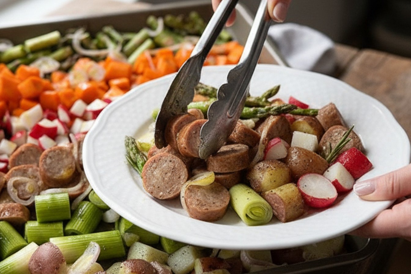 I love a good sheet pan meal. You just chop, toss, and roast. It makes a one pan meal feel like a little magic trick. I first tried this with sausage and spring vegetable bits from my garden. The smell filled my whole kitchen. It was so simple.