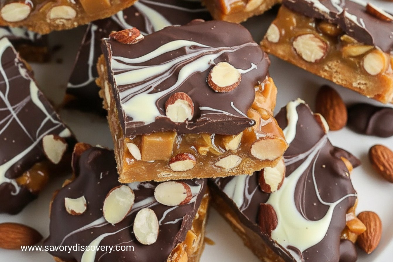 Keywords:Caramel, Almond, Chocolate, Bark, Candy, Holiday