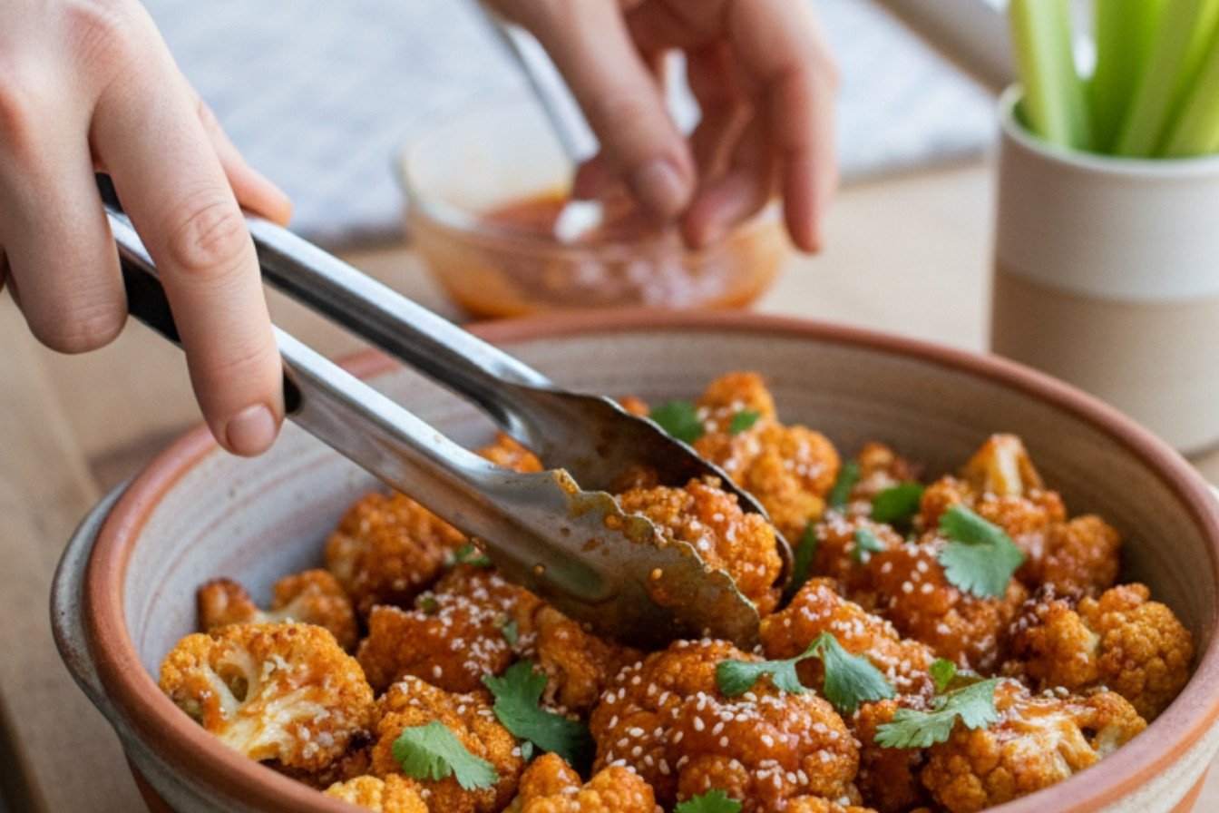 The sauce in the recipe is perfect. It is a mix of honey and Sriracha. This makes a sweet and spicy glaze. You can also try a cool ranch or blue cheese dip. A creamy dip balances the heat. It is a fun part of this spicy cauliflower snack.
