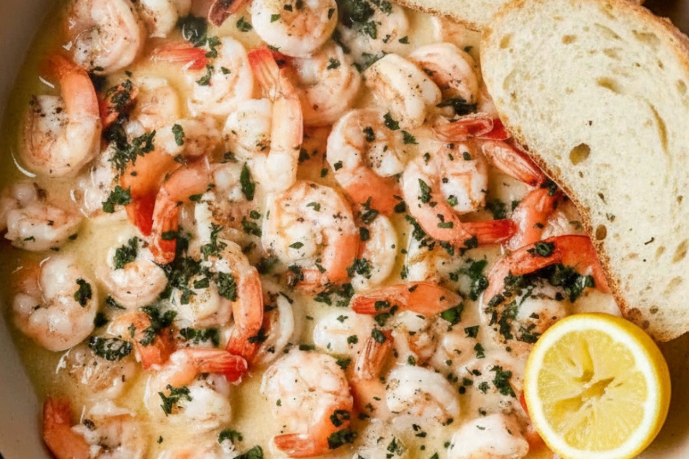 Quick, succulent shrimp cooked in a rich garlic butter sauce, ready in just twenty minutes.