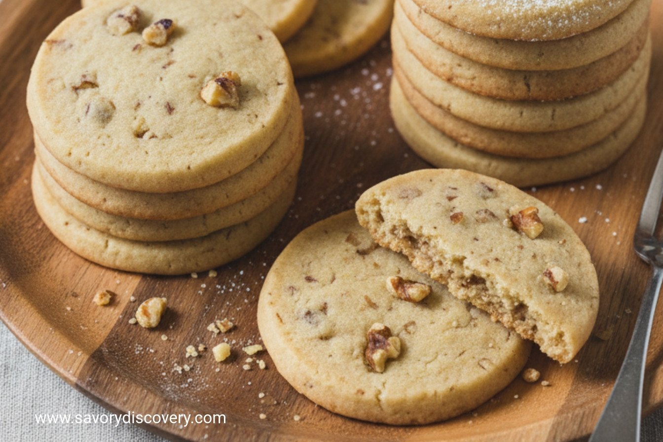 When you slice the cold dough, it feels wonderful. You see the little pieces of walnut in every slice. Baking fills your home with a sweet, nutty smell. Let them cool on the sheet. They are still getting firm.