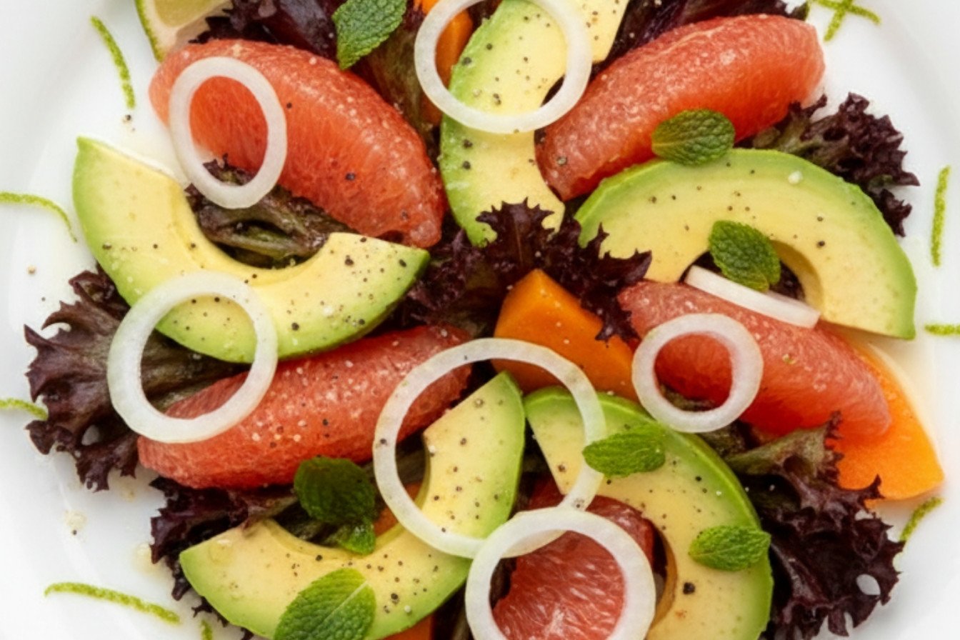 This salad is like a sunny day in a bowl. I make it when winter feels too long. The pink grapefruit is so cheerful. The avocado is like a soft, green hug. Doesn’t that sound nice?